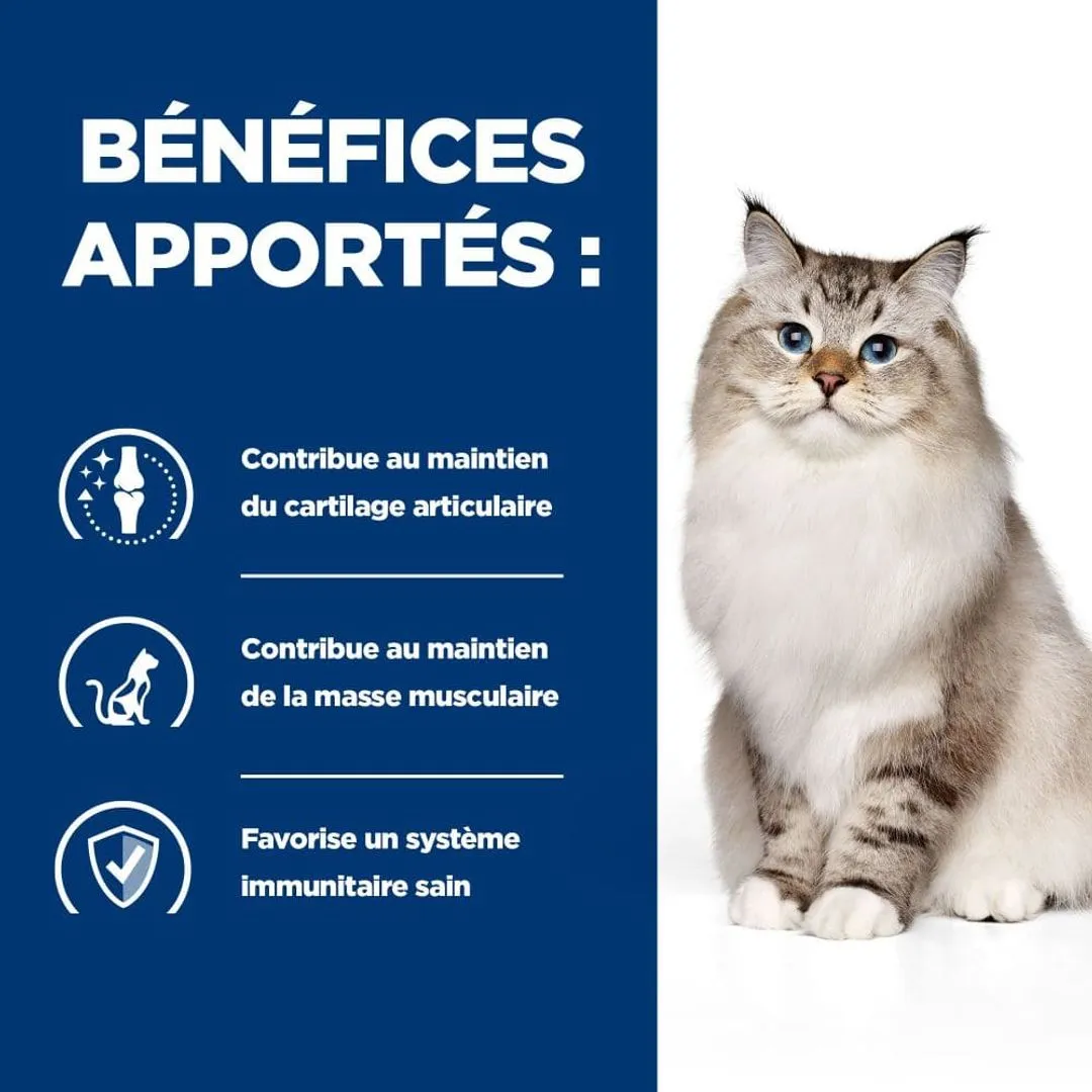- Améliorent la mobilité et l’agilité des chats adultes souffrant de problèmes d’articulations comme l’arthrose.