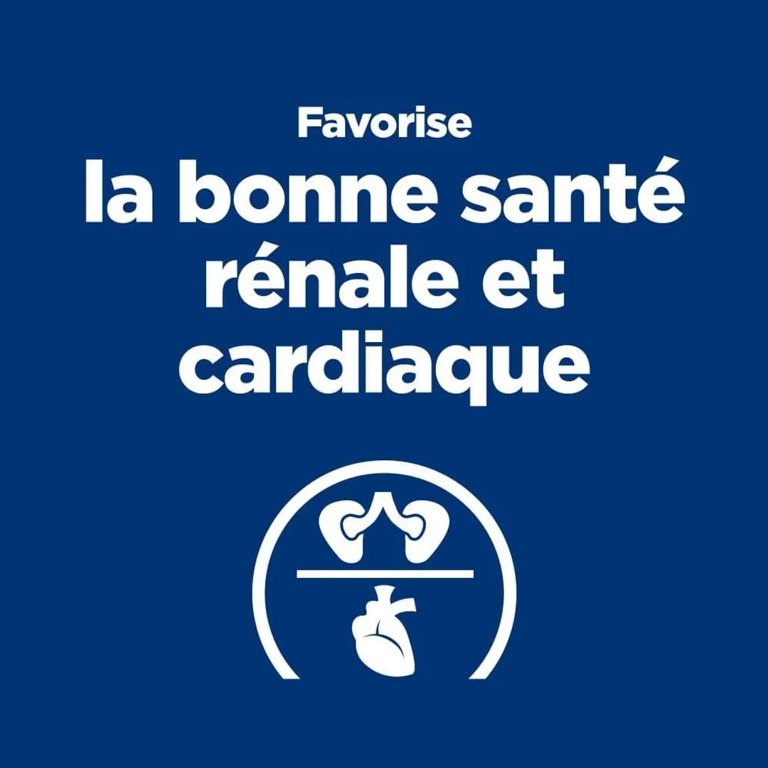 - Renferme un apport équilibré en phosphore et une faible teneur en sodium pour soutenir les reins ;