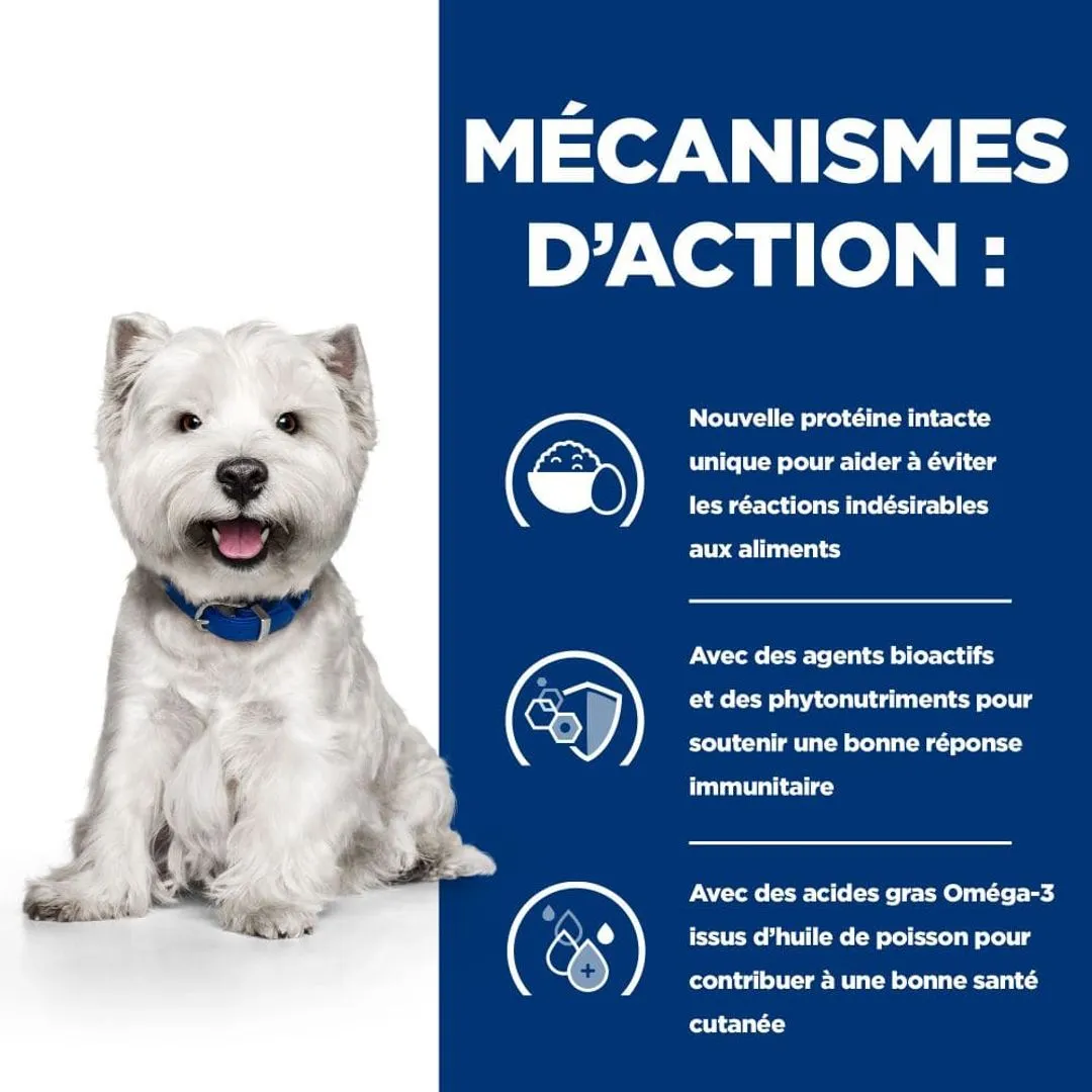 Caractéristiques des croquettes Hill’s Prescription Diet Derm Complete, pour petit chien