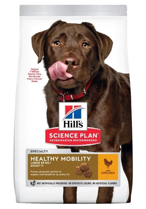 L’aliment pour chien HILL’S SCIENCE PLAN Healthy Mobility Large Breed au poulet fournit à votre chien adulte de grande race une nutrition de pointe éprouvée qui favorise la santé de ses articulations et améliore sa mobilité, pour une vie active. Sa formule parfaitement équilibrée contient de l’EPA issu d’huile de poisson qui favorise la souplesse de ses articulations et aide à garder le cartilage en bonne santé. Cet aliment complet pour chien de grande race contient de plus de la glucosamine & de la chondroïtine, des constituants essentiels d’un cartilage sain. En plus, vous allez adorer le nouveau look des sacs Hill’s Science Plan.