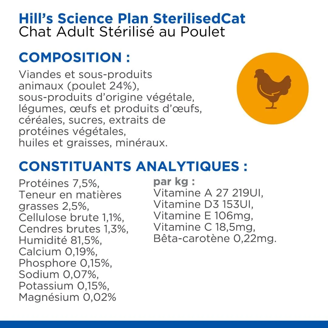 - Hill’s Science Plan Chat Adult Stérilisé Poulet